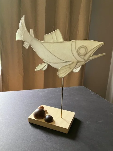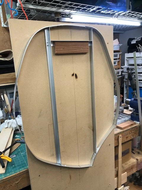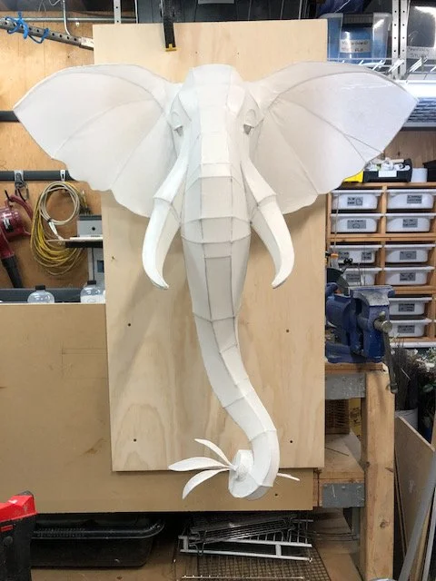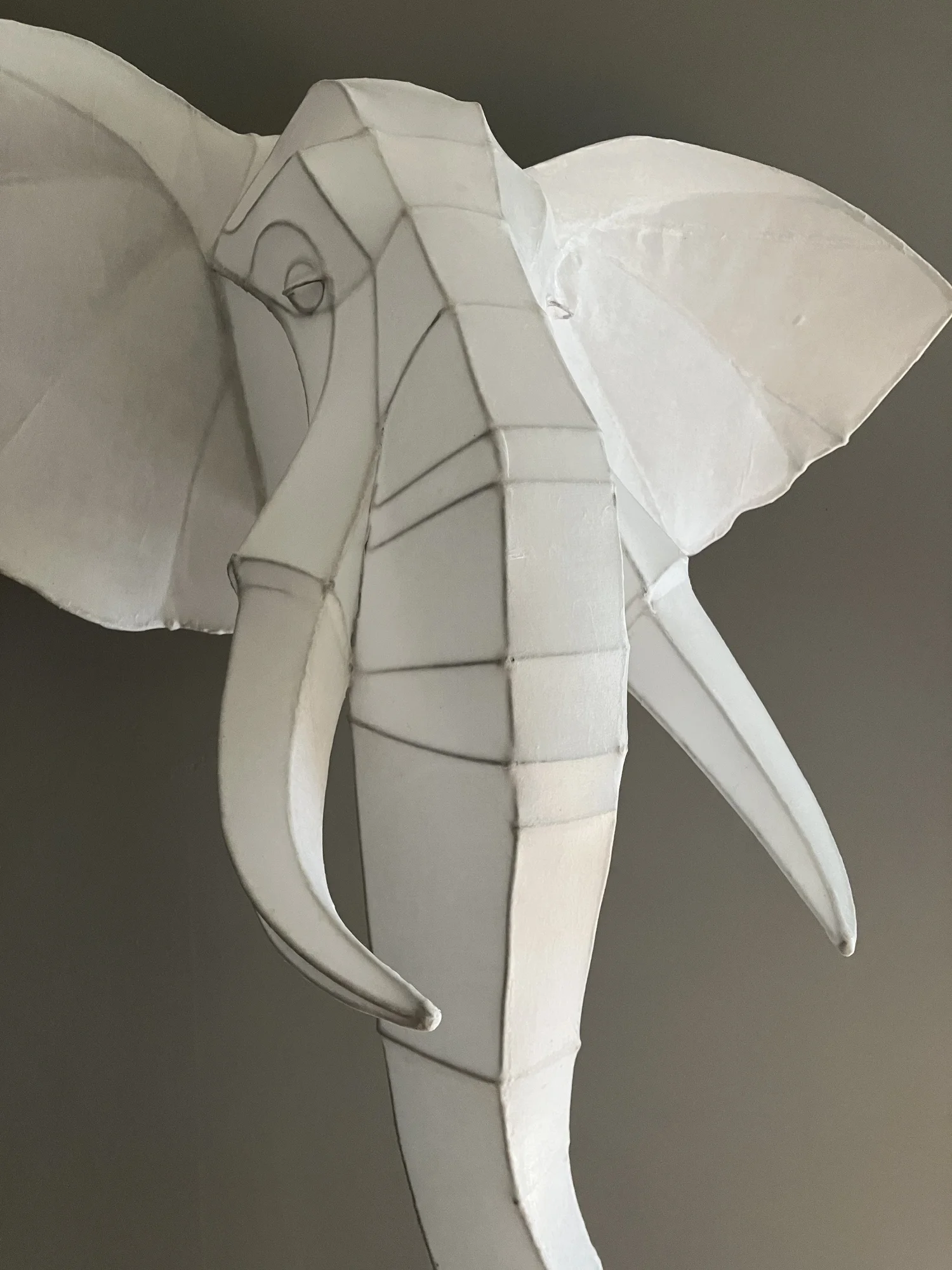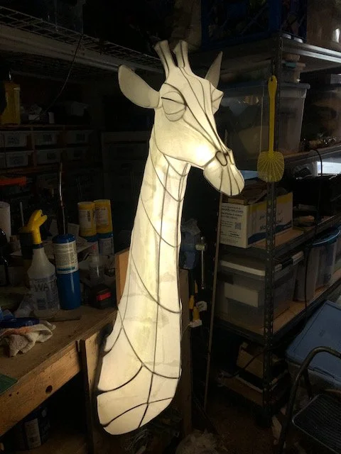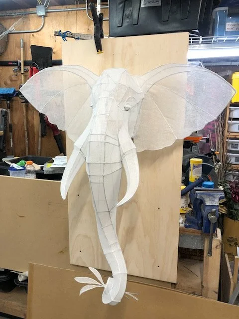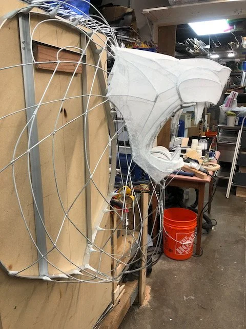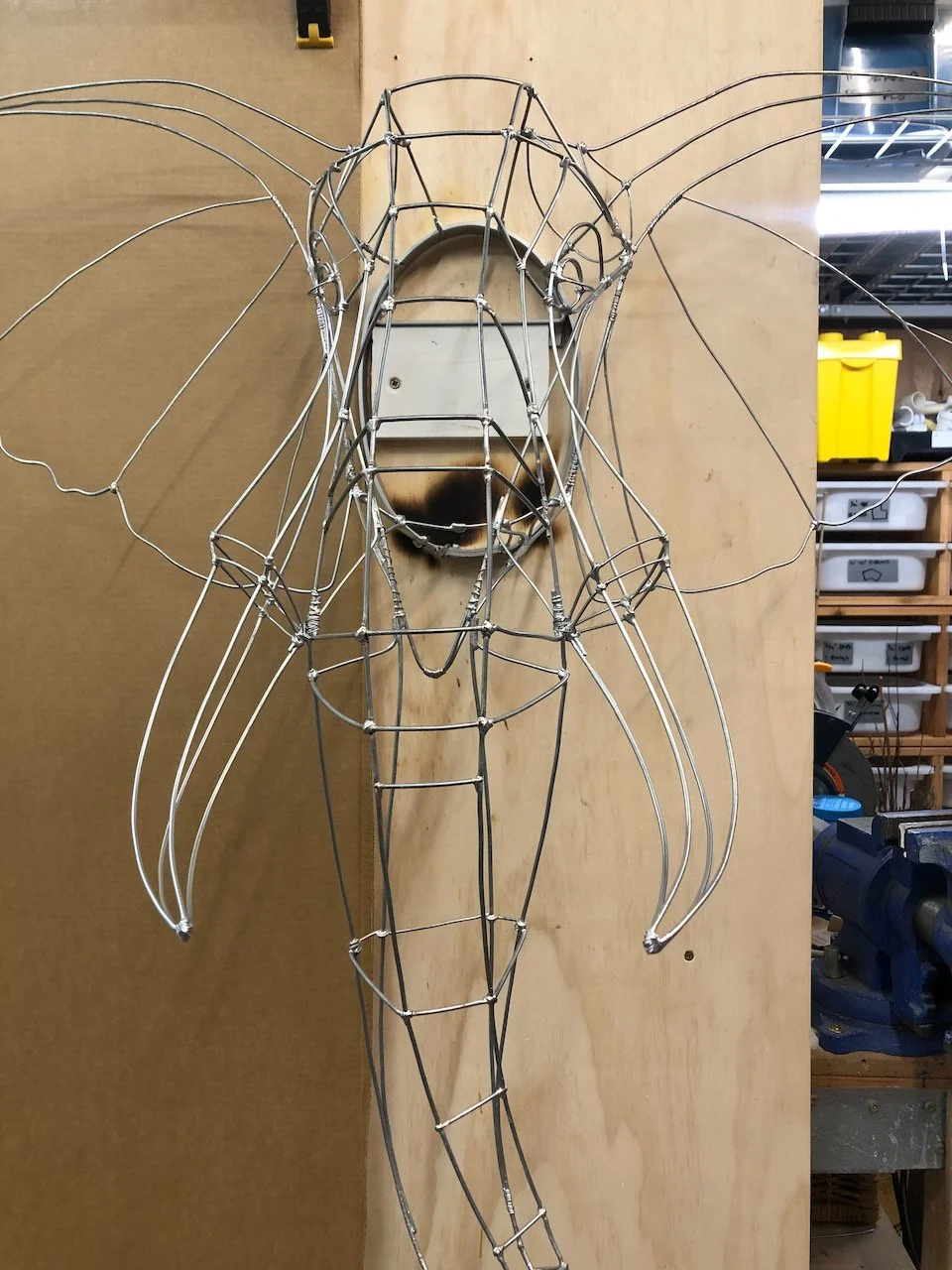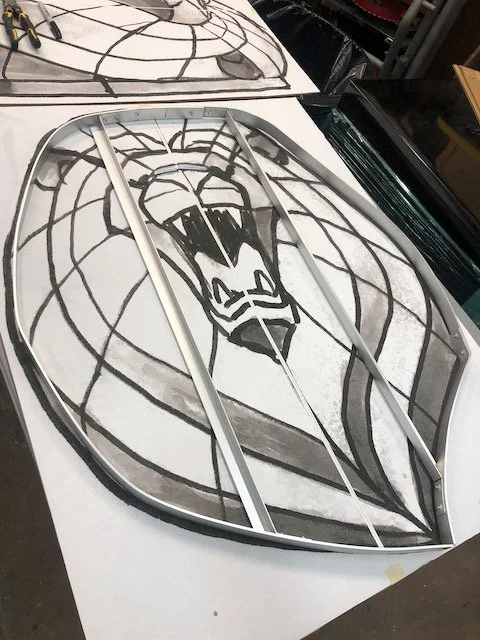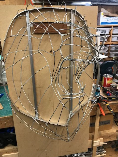 Pen & ink sketch blown up to life size, with the metal framework starting to take shape.